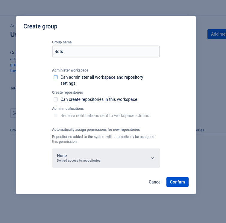 However, it's understandable that you or your security team might want to restrict access to specific repositories. We can do this by creating a new BitBucket user, and limiting the permissions for that user.