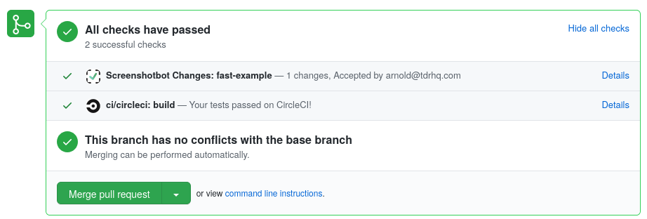 You can then integrate with your Code Review platform of you choice (for example, GitHub), to get build statuses.